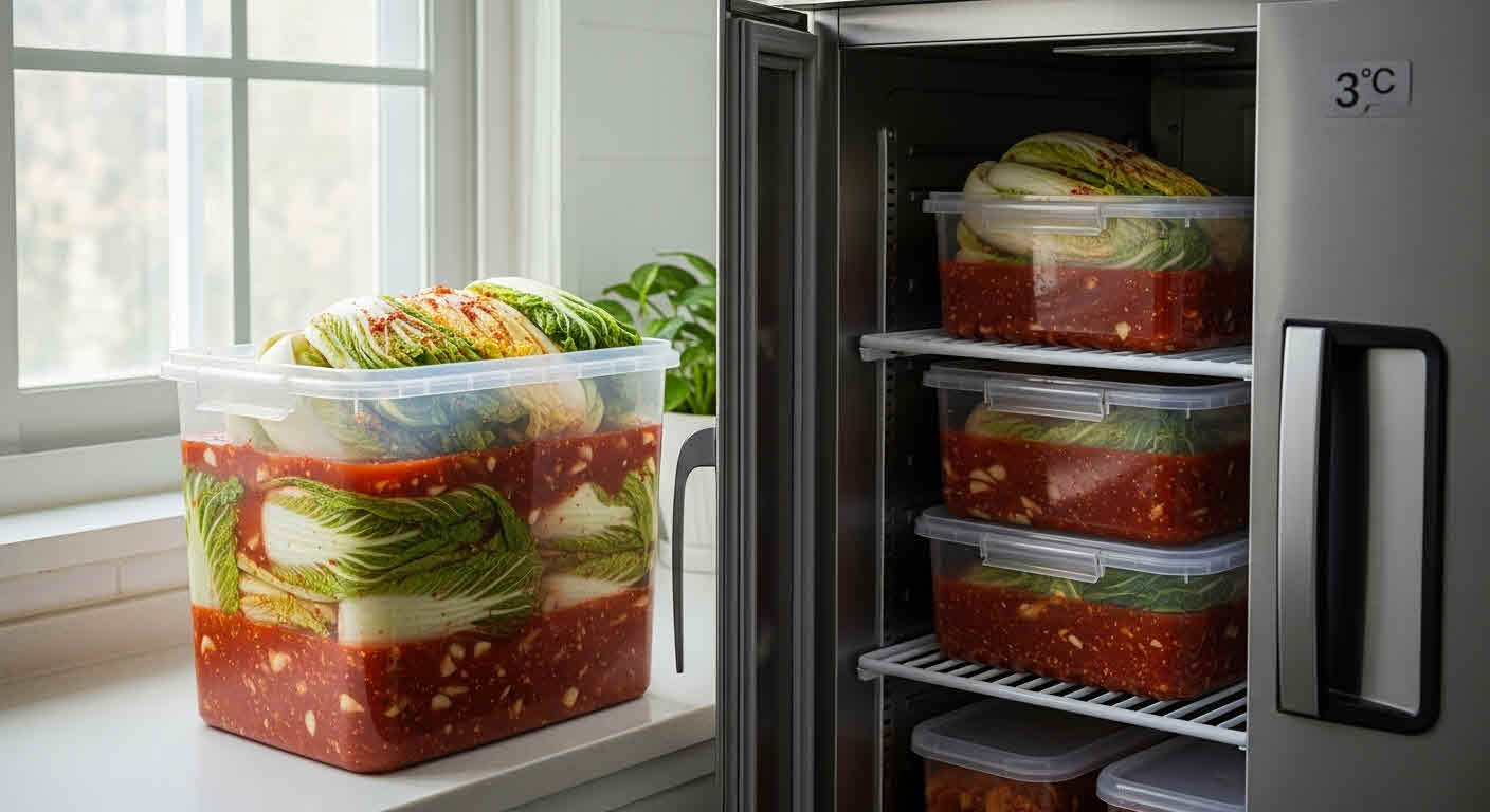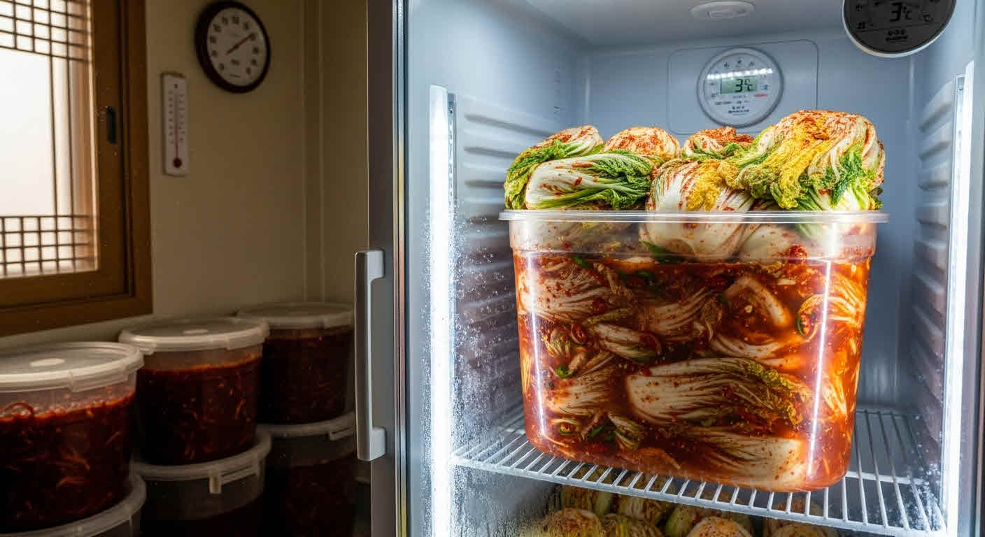 - 김치냉장고 2~4도로 옮겨 1주일 정도 지나면
